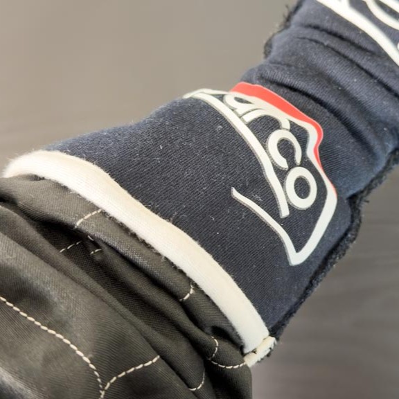 クラッシュ時に飛ぶ破片から手首を守るだけでなく、袖口と重ねて肌の露出を防ぐ役割もある。カフ部分の形状や長さは必ずチェックしておくこと。面ファスナー(マジックテープ)があると固定しやすいが、最近のFIA公認グローブは採用していないものが多い。